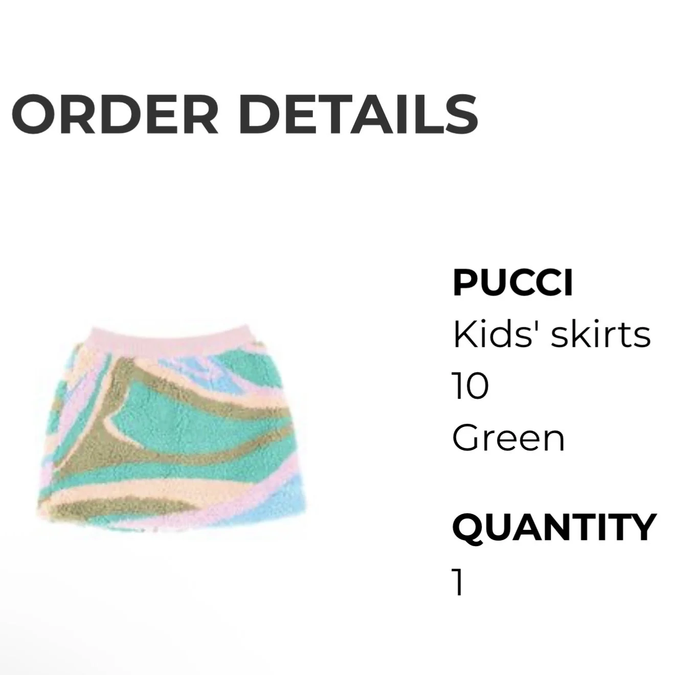 Image 1 of 4 Image 2 of 4 Image 3 of 4 Image 4 of 4 Pucci Kids Skirt Size 10 never worn Sale Price: $50.00 Original Price: $120.00 Never worn Add To Cart Added! Never worn
